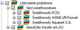 06.11.2015 - grupa warstw: uzbrojenie podziemne AQUANET. Do grupy "Uzbrojenie podziemne" dodano podgrupę "AQUANET" zawierającą sieć przewodów światłowodowych, kanalizacyjnych i wodociągowych pozyskanych z AQUANET._